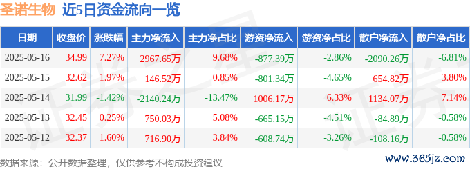本站消息,截至2025年5月16日收盘线上配资网址,圣诺生物(688117)报收于34.99元,上涨7.27%,换手率7.97%,成交量8.96万手,成交额3.07亿元。