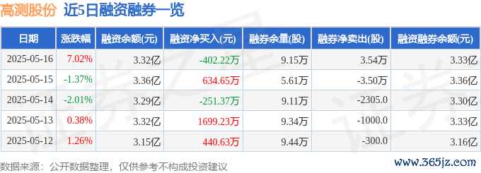本站消息配资查查,截至2025年5月16日收盘,高测股份(688556)报收于10.82元,上涨7.02%,换手率5.52%,成交量30.16万手,成交额3.22亿元。